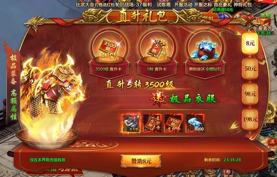 超值新服直升礼包,购买立即直升转生和等级,快人一步,遥遥领先。