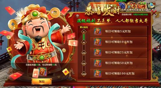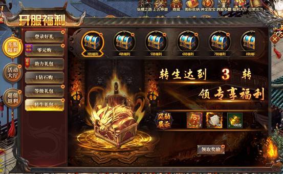 转生达到指定程度,可领真实充值红包、转生凭证和巨额元宝奖励。