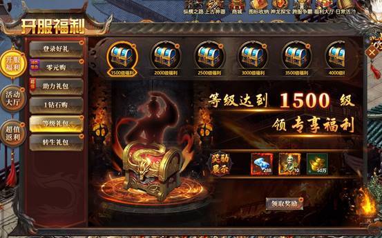 升级达到一定等级,即可领取超值奖励,更有专享福利礼包等你来拿。